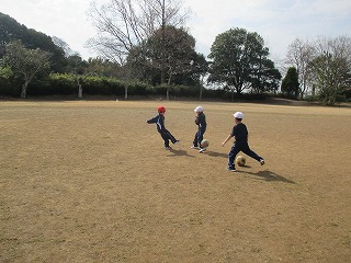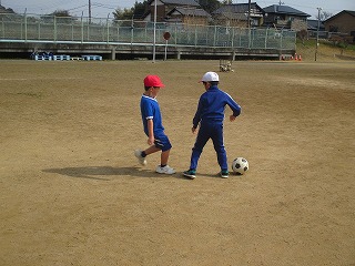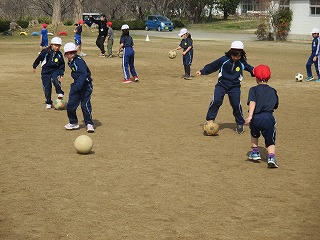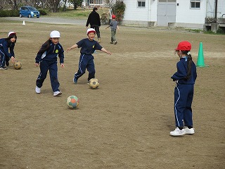 2校時、1・2年生はグラウンドに移動し、体育の学習に取り組みました。今日もボールを使った運動遊びに取り組みました。ボールを使った運動遊びとして、サッカーを取り入れて活動しています。児童たちは、ボールを足で上手に運びながら、相手をかわしてシュートまでしていました。 1・2年生のみなさん、普段、業間休みや昼休みにボールを使って遊んでいる成果が表れていましたね!