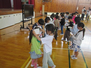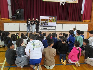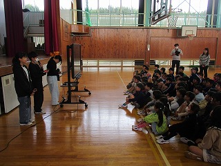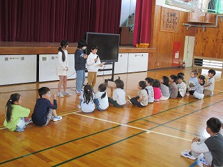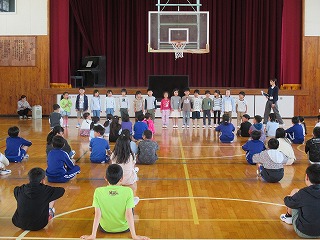 2校時、全校児童が体育館に集まり、1年生を迎える会を行いました。昨年度の中央委員会で企画し、運営しました。「お互いにあいさつ」「小張小の1年間、○×クイズ」「プレゼント渡し(2年生から)」「校歌を歌おう」などに取り組みました。 少し緊張気味の1年生でしたが、2~6年生の温かい雰囲気の中で、徐々にその緊張も解かれ、最後にはハイタッチをして退場する場面も見られました。 1年生のみなさん、これからも楽しく学校生活を送っていきましょう!