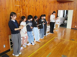 3校時、2年生は音楽室に移動し、音楽の学習に取り組みました。今日は、「メッセージ」という曲を使って、「友達の声を聞きながら歌おう」というめあてを立て、学習を進めました。「メッセージ」の曲を聞き、どんな歌に感じたのか、どんな風に歌ったらよいのか、イメージをみんなで共有してから、実際に歌ってみました。児童たちは、自分のイメージを形にしようと、歌うのを工夫しながら取り組みました。 2年生のみなさん、自分の思ったとおりに歌うことができましたか?