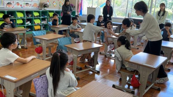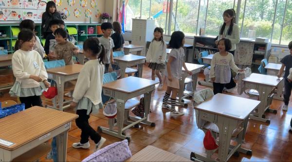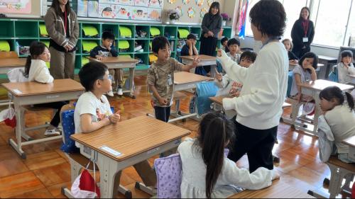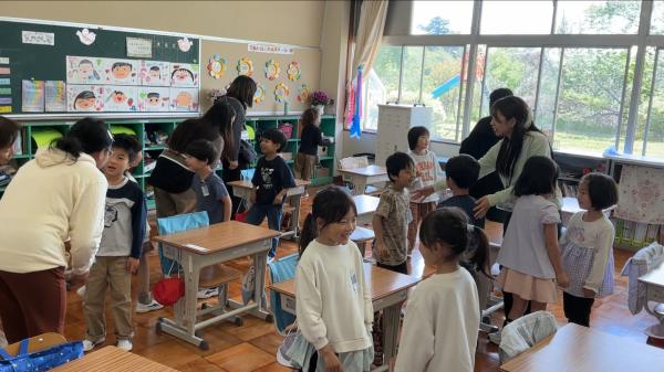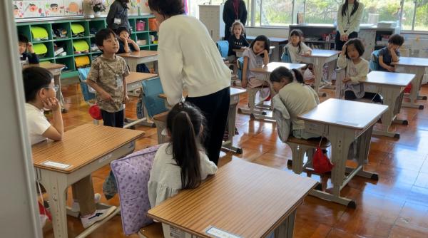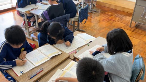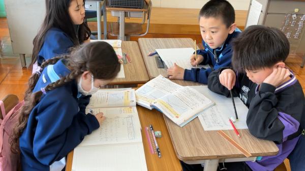 1年生は、英語で自己紹介とじゃんけん列車を行いました。ALTの先生たちも加わって大人数で楽しみました。 4年生の算数では、2つの折れ線グラフを見比べて、わかったことをグループで話し合っていました。自分の考えを友達と伝え合うことができました。