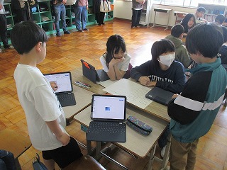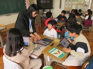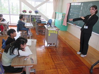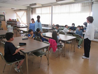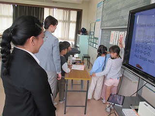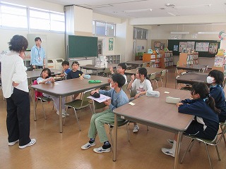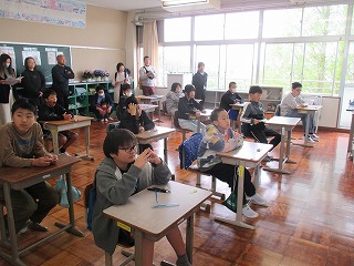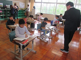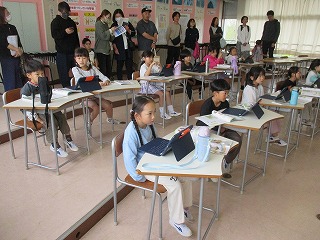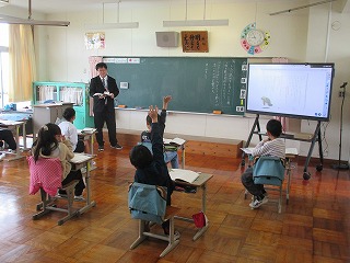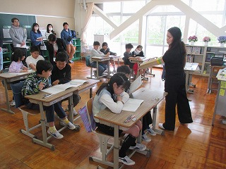 1校時、授業参観を行いました。1年生は生活「どうぞよろしくの会」、2年生は音楽「音楽でみんなとつながろう」、3年生は国語「すいせんのラッパ」、4年生は理科「動物のからだのつくりと運動」、5年生は理科「天気の変化」、6年生は学活「家に帰ったら何をする?~How to study at home?~」の授業を公開しました。その中で、2・4・5・6年生ではALTや英語専科教員もT2で授業に入る「CLIL型授業」を展開しました。どの学級でも児童たちが一生懸命取り組んでいました。
