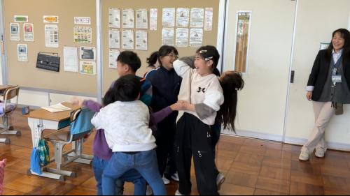 業間休み、1・2・6年生が体育館に集まり、異学年で交流レクを行いました。交流レクでは、全員でおにごっこに取り組みました。学年関係なく、体育館の中を思いきり走り回りながら、みんなで楽しみました。1・2年生の児童たちにとっても、もうすぐ卒業する6年生と遊ぶ機会は、とても楽しかったようです。