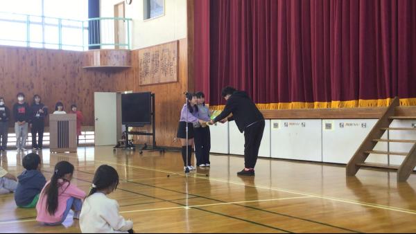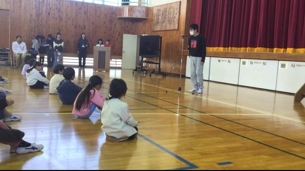 秋祭り後半の様子です。 米作りや芋づくりの動画を見ながら、学校運営協議会の方からお話がありました。 収穫を味わうでは、自分たちが作ったお米やさつまいもを食べて体の芯まで温まりました。 芸術鑑賞では、プロの方の歌声に感動しましたね。みんなの大好きな曲をたくさん歌ってもらいました。 秋祭りには多くの方々が協力してくださいました。たくさんの人に支えられながら、子どもたちが学校で安心して学んでいることを実感した1日でした。