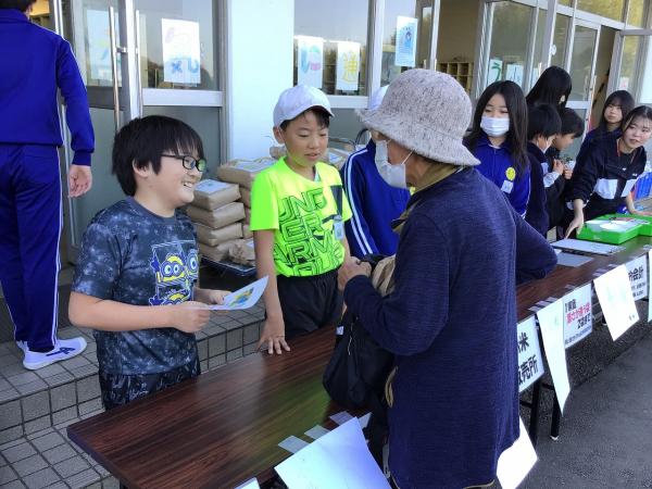 農業体験で自分たちが収穫したお米(小張米)を5・6年生が中心となって販売しました。 13:00からの販売でしたが、行列ができるほどたくさんの方に来ていただき、子供たちも嬉しそうでした。 販売は明日、明後日も行いますので、保護者の方のご来場をお待ちしております。