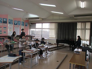 3校時、4年生は音楽室に移動し、音楽の学習に取り組みました。今日は、「ビリーブ」と「スマイルアゲイン」の曲の合唱と鑑賞を行いました。合唱では、立って歌っても、座って歌ってもよいことにして歌っていきました。口を大きく開けてはっきり歌うことを意識しながら歌ったので、大きな声ではっきり音を届けることができました。