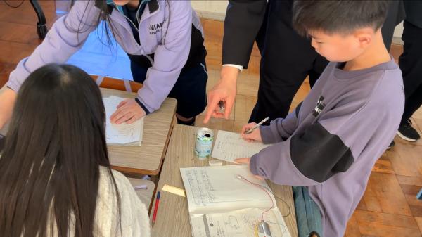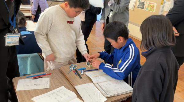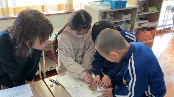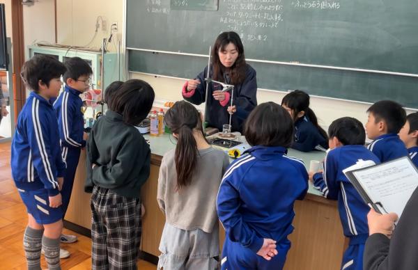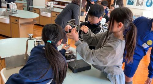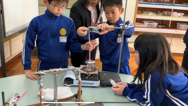 学力向上サポート訪問があり、3・4年生の理科の授業を見ていただきました。 ALTや英語スペシャリストの先生が一緒に授業をしてくれました。 実験器具の名前や今までに学んだ表現を英語で言いながら実験に取り組みました。 予想と比べながら、友達と協力して実験に取り組んでいました。