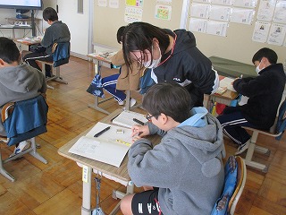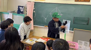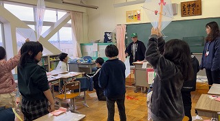 今日は、青少年育成会の方を講師に招いて、凧の骨付けを4年生で行いました。講師の先生が描いて作った凧を見て、感激する4年生。また、骨付けや足付けも行い、自分だけの凧を作り上げ、笑顔いっぱいでした。