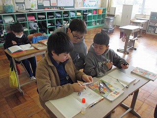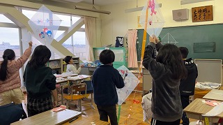小張小では、2月5日に行われる「小張小 凧あげ会」に向けて、各学年で凧づくりを行っています。
