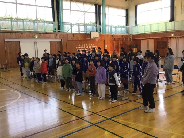 1学期の終業式がありました。 はじめに、学校外の活動や、夏休みの作品、読書の分野で頑張った児童が表彰されました。 終業式では、2名の児童が1学期に頑張ったことや2学期に向けて挑戦したいことを発表してくれました。 みんなの前に立った児童たちは少し緊張気味でしたが、それもよい経験ですね。どの児童も立派な態度で表彰や式に臨んでいました。