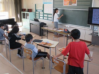 3・4校時に、全学年の授業を公開し、教育委員会や幼稚園・小学校の先生に授業を見ていただきました。