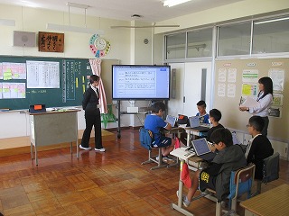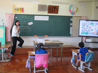 4校時、たんぽぽ学級では自立活動で「なぞときスリーヒント」の学習に取り組みました。各自が設定しためあてを書いたホワイトボードを黒板に掲示し、発表し合ってから、学習を進めていきました。