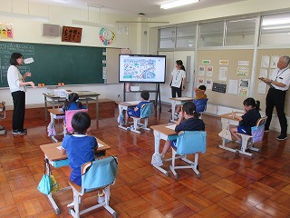3・4校時に、全学年の授業を公開し、教育委員会や幼稚園・小学校の先生に授業を見ていただきました。