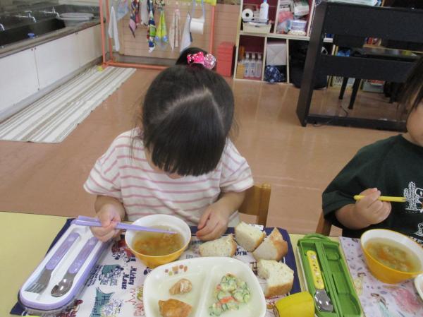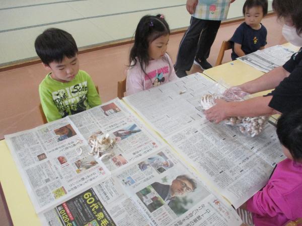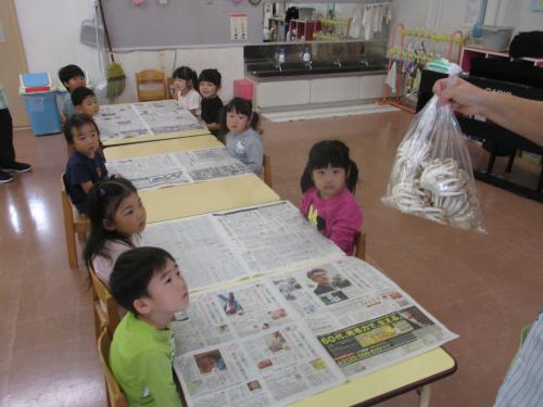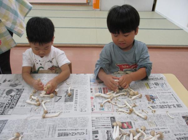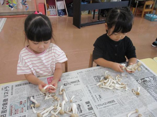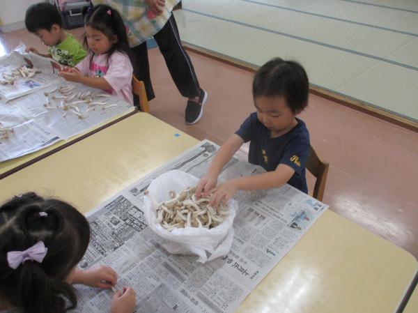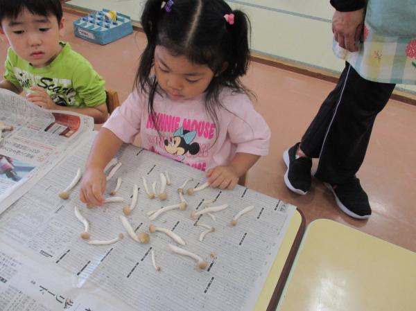今日は給食で使うしめじをほぐすお手伝いをしました!! 初めは戸惑う子もいましたが、みんな上手にできました👏 給食で、きのこスープが配膳されると、「りんごさんがお手伝いしたやつだ〜😊」ととっても嬉しそうな子どもたちでした💓