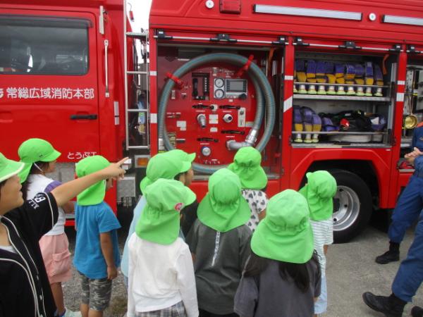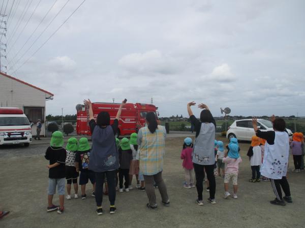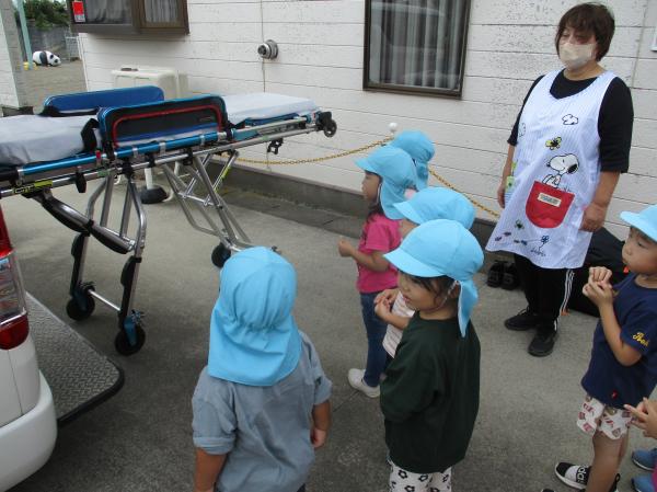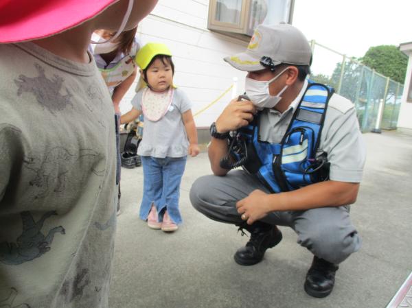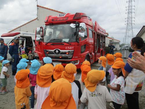 今日は、避難訓練を行ないました! 大きな消防車や救急車に興味津々の子どもたち👀✨ 消防士さんや救急救命士さんに質問をしたり、車両を見せてもらったりしました。 質問コーナーでは「どうして火事から人を助けられるの?」「どうして消防車は赤いの?」などの質問があり😁 また最後の挨拶は、かっこいい敬礼や立ち姿を真似る子の姿が見られました★🎵