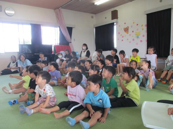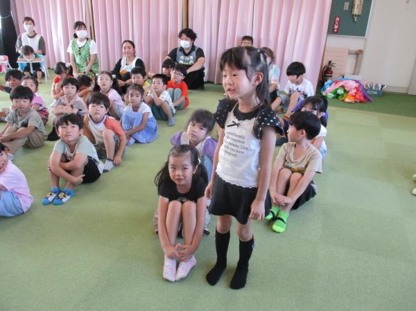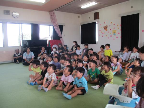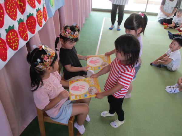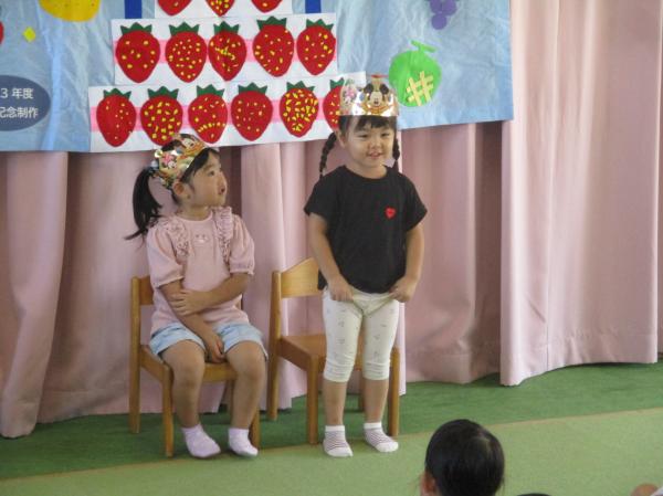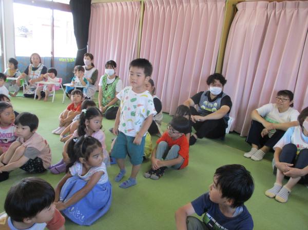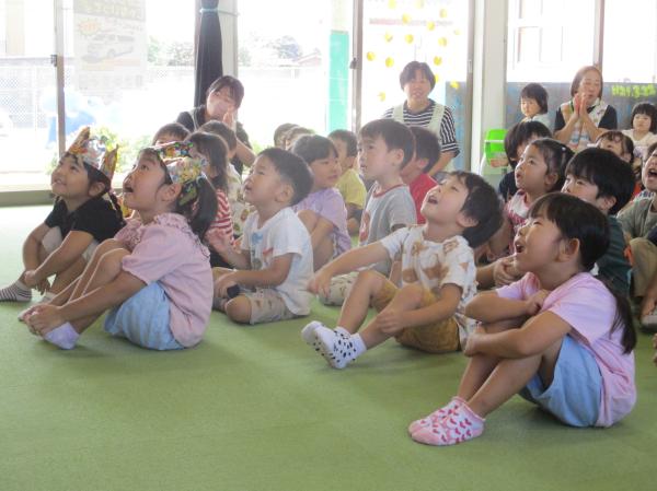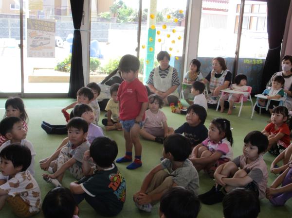 今日は9月生まれの誕生会を行いました✨ 誕生児はりんご組の2名のお友達!🎂 バッチリ自己紹介★ 質問にも堂々と答えることができました👏 そして皆にたくさんお祝いしてもらい、とっても嬉しそうでした😊 出し物でガチャガチャが出てくるとみんな興味津々👀 100円を入れる姿を見て「100円いっぱい持っていていいな〜」との声が…😁 様々なカプセルが出てきてとっても楽しいシルエットクイズでした😊