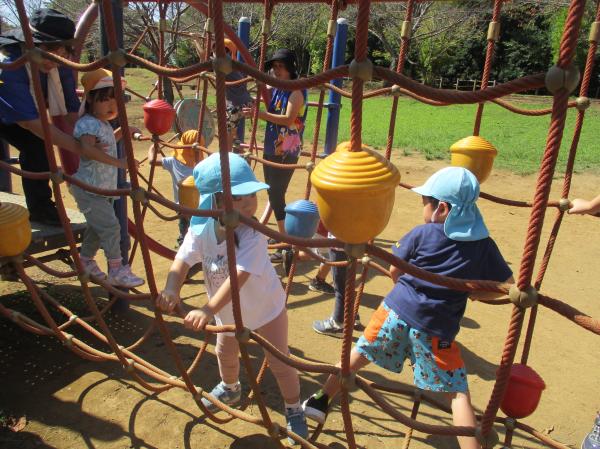 今日は待ちに待った園外保育!! 朝からウキウキの子どもたち…💓 りんご組は初めての園外保育にワクワクドキドキな様子でした😊 バスに乗ると、嬉しそうな笑顔✨✨ 公園に到着すると、少し気温が高かったため、水分補給をこまめに行いながら過ごしました😊 遊具では約束事を守り、落ち着いて取り組む姿が👏 た〜くさん遊ぶことができました★ 最後は全員でローラー滑り台に挑戦!!とっても楽しそうな子どもたちでした✨