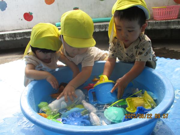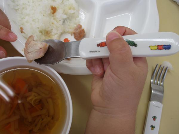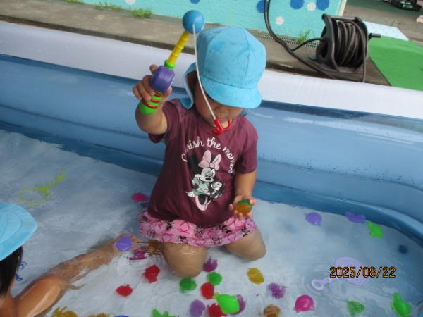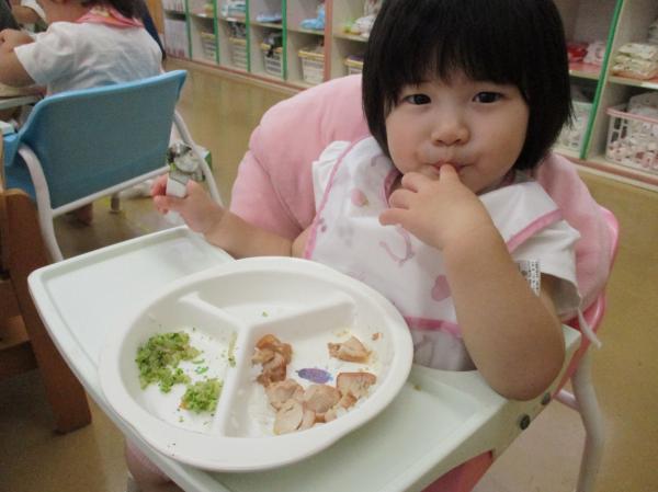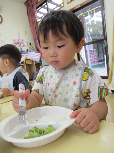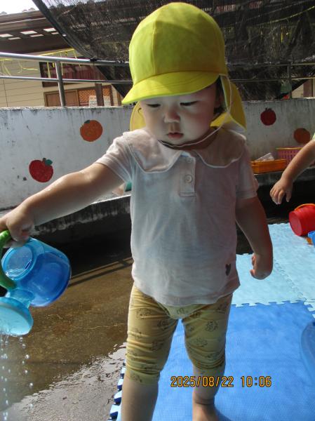 本日は水遊びファイナルDAY🔥 みんなこの夏で水に慣れてのびのびと遊べるようになりました✨ また来年もたくさん遊べるといいですね♬ たくさん遊んだ後の給食はみんなモリモリ食べていました♬ 1歳児さんは自分で食べたい気持ちが高まり、スプーンやフォークを使って食事をするようになってきました♬ 2歳児さんは三点持ちにチャレンジ中!食材やメニューによって難しい日もありますが、毎日少しずつ取り組んでいる子どもたちです💓