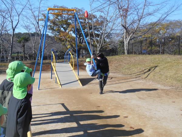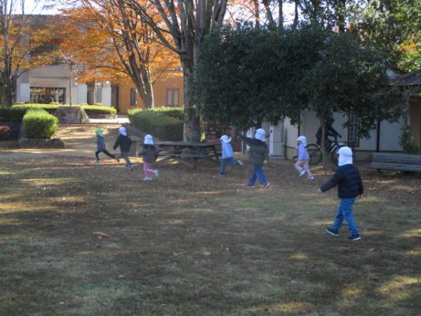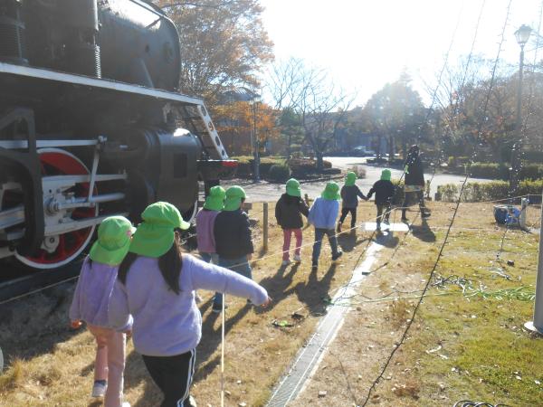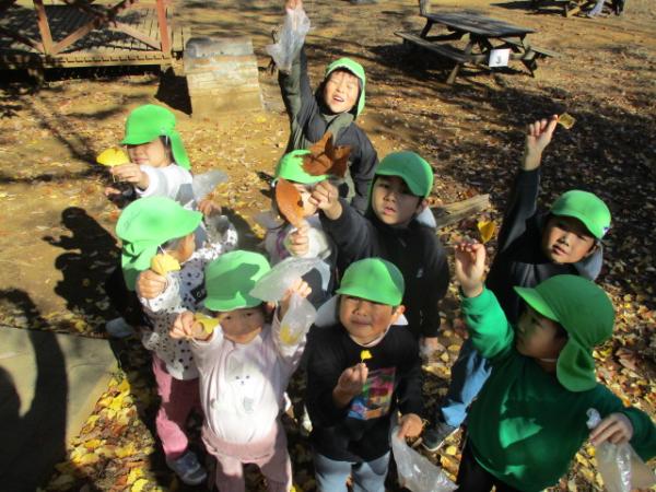 今日は、きらくやまふれあいの丘に行ってきました💨 朝からワクワクが止まりません💓 「大きいすべり台どうやって滑る❓」と疑問を抱いていたので、練習をしてからいざ出発❗ たくさんの固定遊具や大きなSL機関車に興味津々👀 記念写真を撮り、ターザンロープやローラー滑り台で遊びました👊😆 また紅葉を楽しんだあとは、どんぐり拾いもしました😊 最後はみんなで増やし鬼も楽しみました😍 楽しい時間はあっという間だね❗お家に帰りましたらぜひ、お土産話を聞いてあげてください👂
