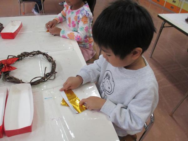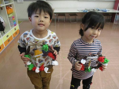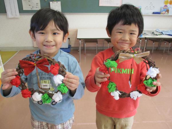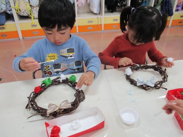 もうすぐ12月✨子どもたちの楽しみがある月ですね🎅 今週は、クリスマスに向けてクリスマスリースの製作を行いました🎄