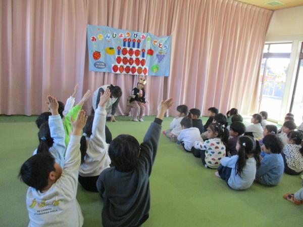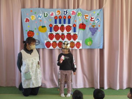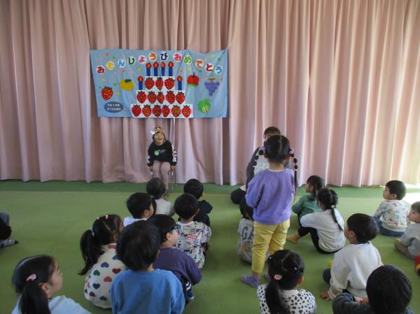 今日は、1月生まれのお友達の誕生会があり、みんなでお祝いしました✨ 出し物では、「なぞなぞケーキ」を行い、みんなでなぞなぞに挑戦しました🎵