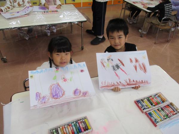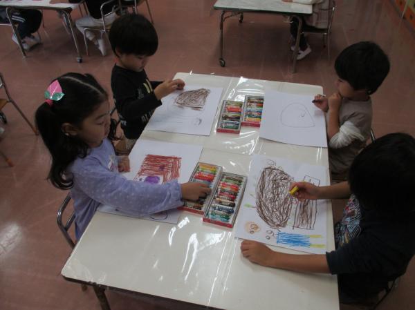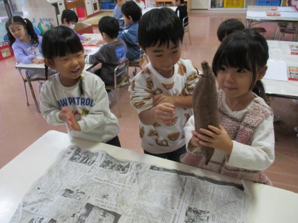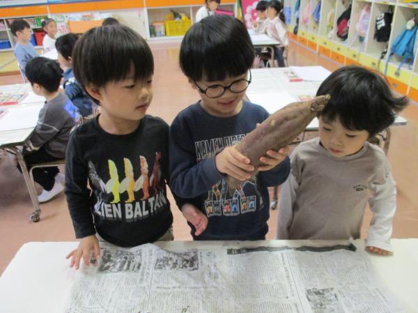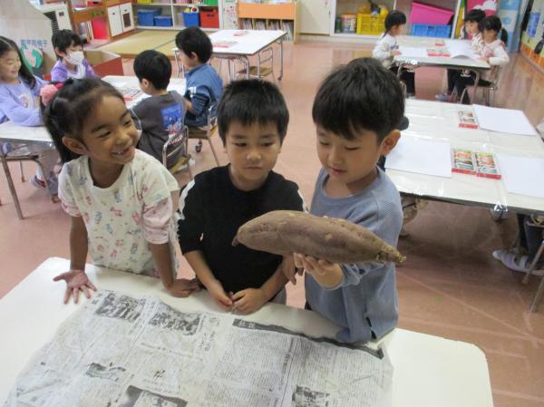 子どもたちが育てたサツマイモのお味は、どうでしたか❓今日は、サツマイモ掘りやお家で食べた時の思い出をクレヨンで描きました😊