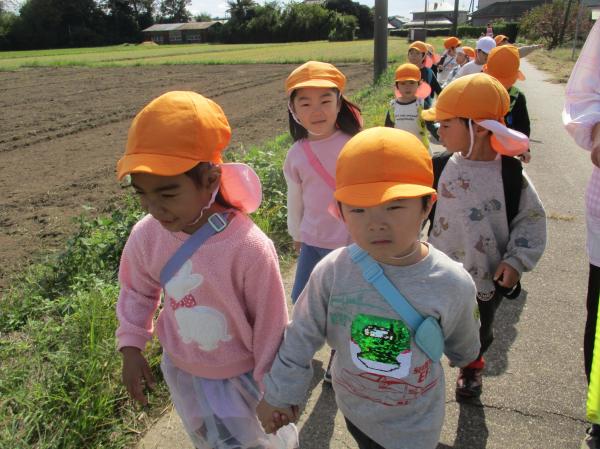 今日はりんご組、ぶどう組、めろん組の3クラスでお散歩にいってきました🎵 久しぶりのお散歩にうきうきな様子の子どもたち😊 歩いていると、秋を感じることができる柿やイチジクを発見🍁 神社公園に着いてからは、花摘みや鬼ごっこなどを楽しみました✨ またみんなでお散歩に行きたいね💕