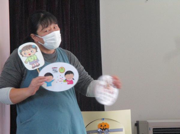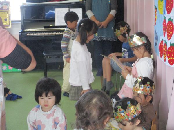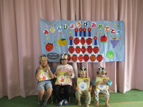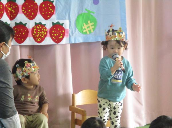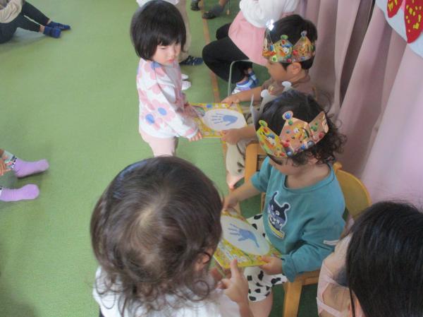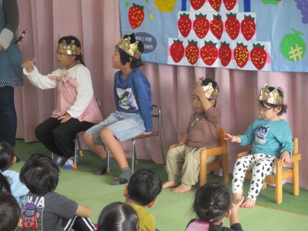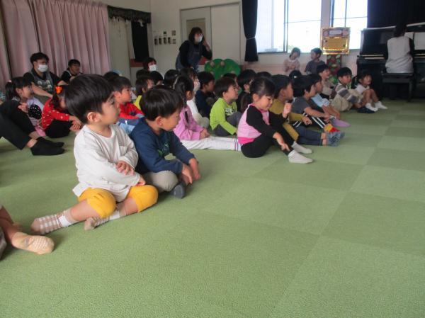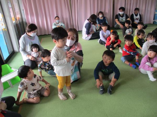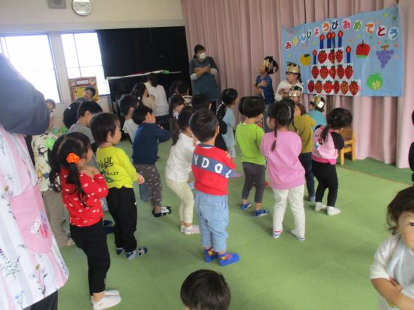 今日は、10月生まれの誕生会♡みんな質問にしっかり答えてくれて、成長を感じました!会がはじまる前に「誕生日なの!」「楽しみ♡」と保育士に伝えてきてくれました。暖かい気温と温かい雰囲気の中で誕生会は進みました!みんなの楽しみにしている保育士の出し物は、ハロウィンにちなんだペープサート🎃とっても興味津々で見ていました!一つ大きくなった友だちをお祝いしながら、楽しい時間を過ごしました。お誕生日おめでとう!!