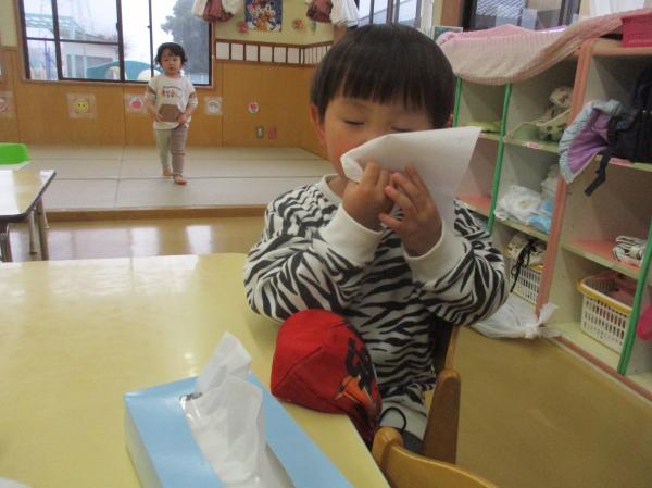 そして最近、ピンク帽子さんは鼻水を自分でかむ練習をしています⭐