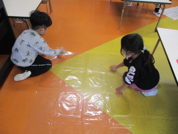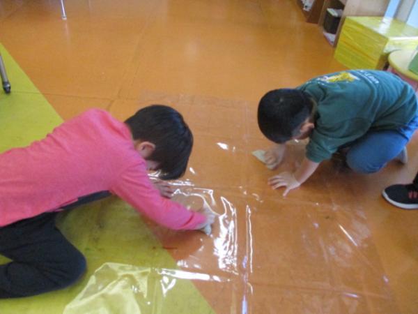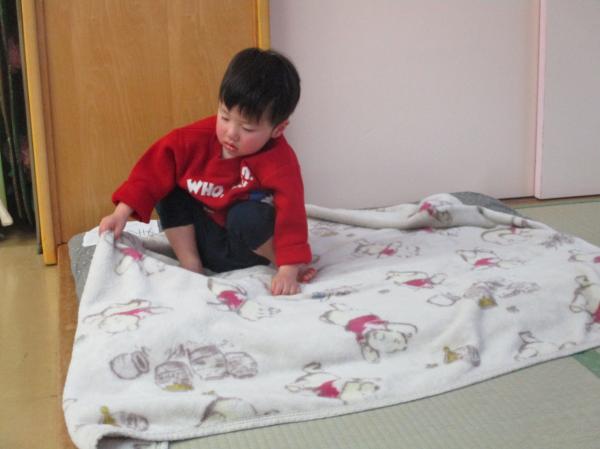 自分よりも大きな毛布を広げることはとても大変ですが、みんな一生懸命取り組んでいます🔥