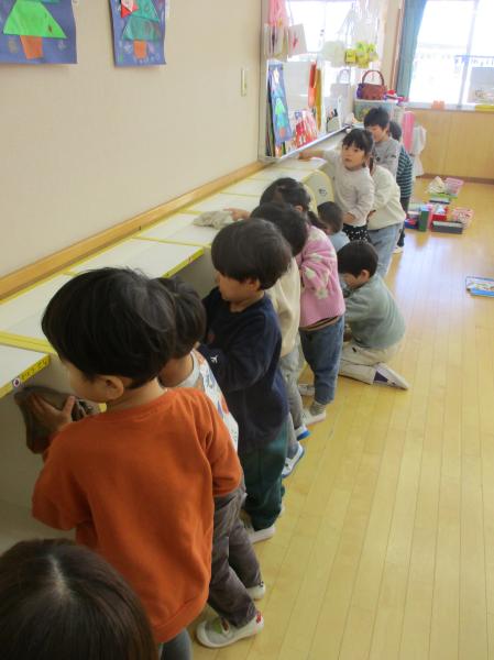 みんなで年末の大掃除をしました✨ロッカーや靴箱、椅子など、雑巾でゴシゴシとみんなで協力しながら掃除をしていたうさぎ組さん🐰💦みんな、夢中になって取り組み、掃除が終わると「できたよ✨」「きれいになったよ✨」と、嬉しそうでした😊🎶みんなのおかげでお部屋はピッカピカ😆✨✨これで、無事に年末が迎えられそうです♥