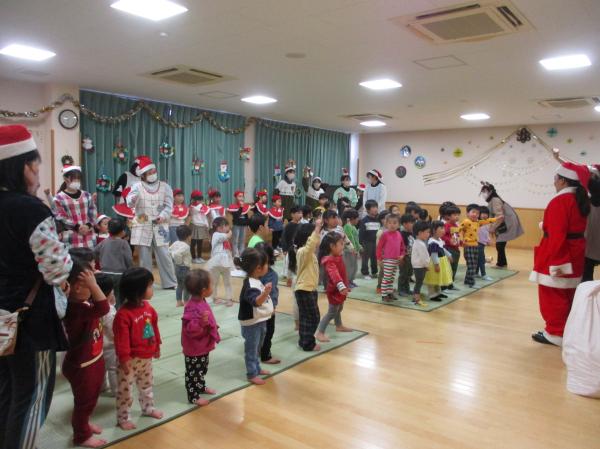 今日はクリスマスイブ🎄✨ということで、お楽しみ会がありました😊🎶朝から「サンタさんくるかな?😆」と楽しみにしていた子どもたち💓きりん組さんのキャンドルサービスにうっとりしたり、クイズを楽しんだりしていると、サンタさんが登場🎅✨みんな大喜びでした😆🎶一緒にダンスを踊って、プレゼントをもらったら、記念撮影も📸あっという間でしたが、楽しい時間を過ごすことができました♥プレゼントと自分たちで作った飾りをお持ち帰りしますので、お家で見てみてください😘✨