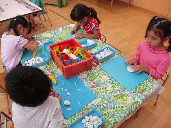ぱんだ組の朝の遊びの様子をお知らせします✨おままごとやブロックが好きな子どもたちですが、その他にもポケモンのゲーム、小さい四角いブロック、粘土なども楽しんでいます😍🎶友達と誘い合って遊ぶ姿が見られています😉✌また、発表会に向けて大道具作りも大好きな子どもたち❗やりたい😍と積極的です💓どんどん大道具が出来上がってきています😆✨発表会が楽しみですね💕