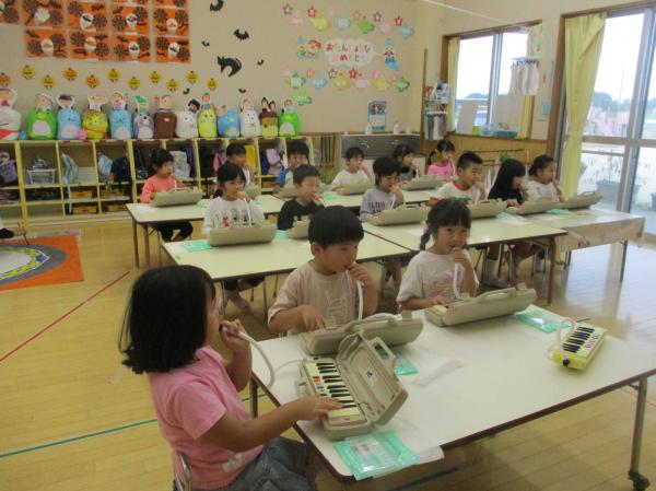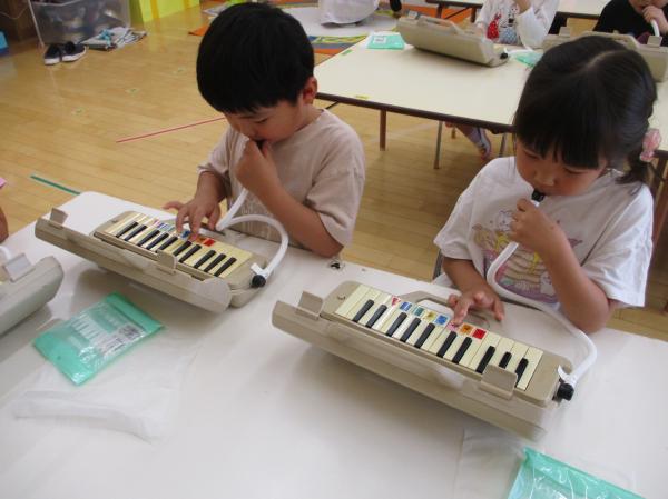 発表会に向けて、ピアニカの練習を始めました🎹 まずは、ティッシュを使って息の吹き方のトレーニング👄ティッシュがヒラヒラするくらいの息づかいでした!! そして、音あそびからスタート🎶 汽車の音、バスの音、救急車の音🚑を鳴らしてみました✨ その後は、トントントンひげじいさんやドレミのうた、パン屋さんへ行こうなどを演奏してみました🎹 子ども達は、指の置き方に気をつけながら上手に吹いていましたよ👏 とても楽しいピアニカ遊びでした🎶