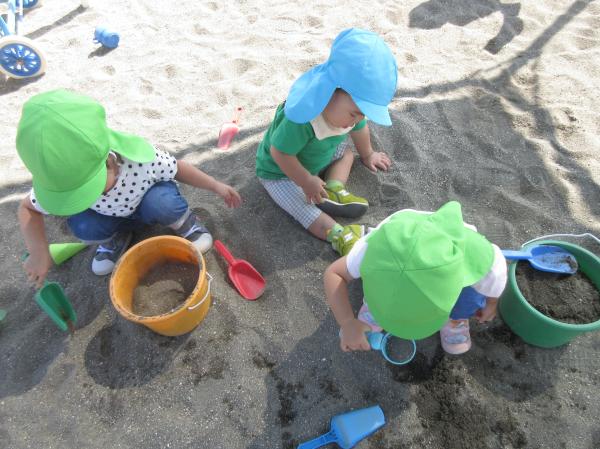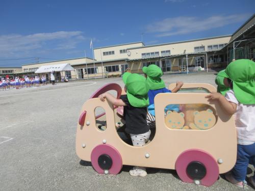 今日は、風が吹いて過ごしやすい陽気だったので、戸外に出て遊びました🎵砂場やお家、バスなど好きな場所に行き、友だちやりす組さんと一緒に遊んだひよこ組さんです😍幼稚園の運動会の練習も始まり、興味津々で所庭を見ていた子どもたち。音楽に合わせて動いたり手を振ったりしていました✨✨