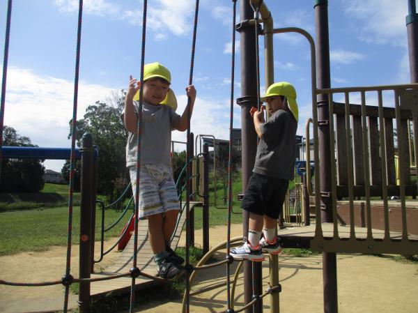 みんながずっと楽しみにしていた園外保育で、みらいの森公園に行ってきました😊🎶公園はもちろん、バスに乗っていくことが嬉しかったようで、バスを見つけるとみんな大喜びでした😆❤公園では、いろいろな遊具に挑戦し、友だちと楽しんでいた子どもたち🎶初めて行う遊具もあったようで「やってみたい!!」と、ずっと笑顔で遊んでいました😊とても楽しかったようなので、ご家庭でも話を聞いてみてくださいね💕