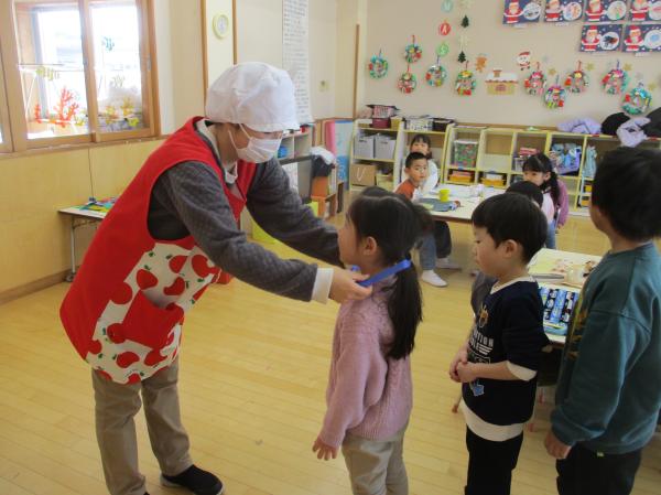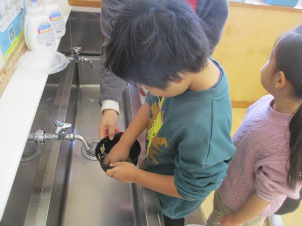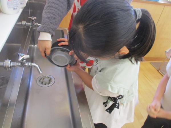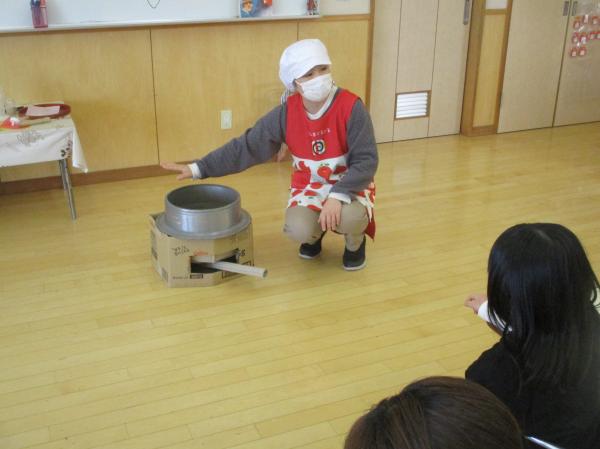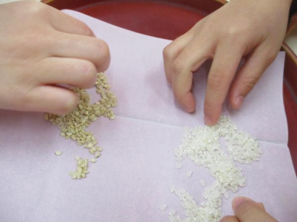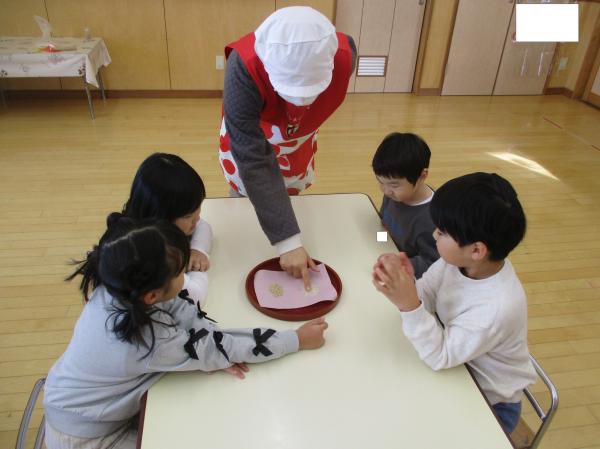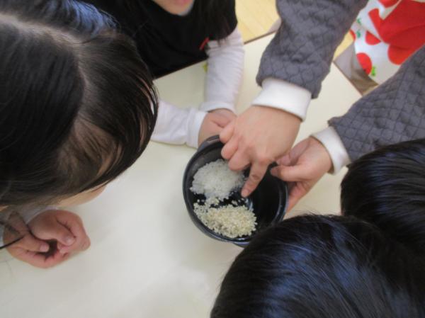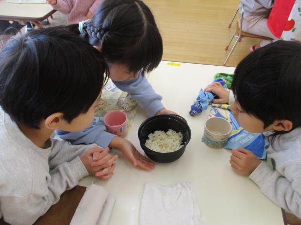 きりん組で育てていたお米が実り、10月に稲刈りを行い、その後、脱穀や籾摺りを経験した子ども達🌾お米ひと粒でも収穫することの大変さが分かり、普段食べているお米のありがたさを感じることができました🍚そして、いよいよ今日はそのお米を炊いてみることに✨子ども達のワクワクはとまりません😊💓匂いや触った感触などを感じることができたようです👏最後には、給食先生からお米マスターに任命され、一人一人メダルをもらい大喜びな子ども達でした!!お豆マスターに続いて、お米マスターになれてよかったね✨これからも、給食先生に食べ物の色々な知識を教えてもらいながら、食への興味関心を高めていきたいと思います🍙