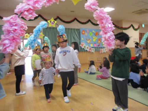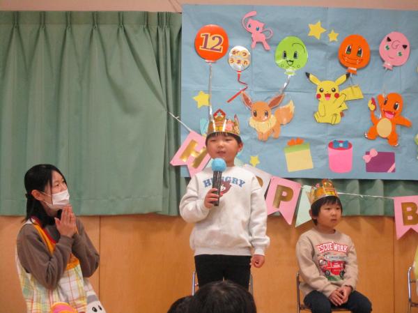 12月生まれの誕生会がありました😆✨誕生児のお友達は、みんなの前に出て緊張している姿も見られましたが、名前や質問など大きな声で発表することができました🎶みんなからの質問では、好きな色や好きな食べ物、好きな車を聞かれていました😊好きな車では、「ママの車🚗」という答えが多く、車の種類もわかっていて「デリカ❗」と答える子も・・・👀💡