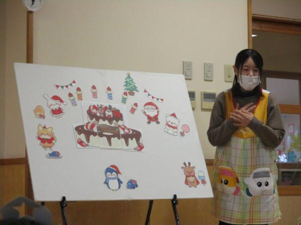 先生からの出し物では、子どもたちも一緒に参加しながら最後まで楽しんでいました💖みんなで魔法をかけると、プレゼントボックスがクリスマスケーキに変身✨みんな大喜びでした🥰また、来月の誕生会もお楽しみに😉✌