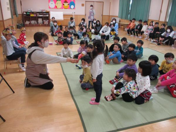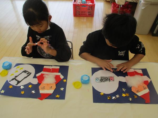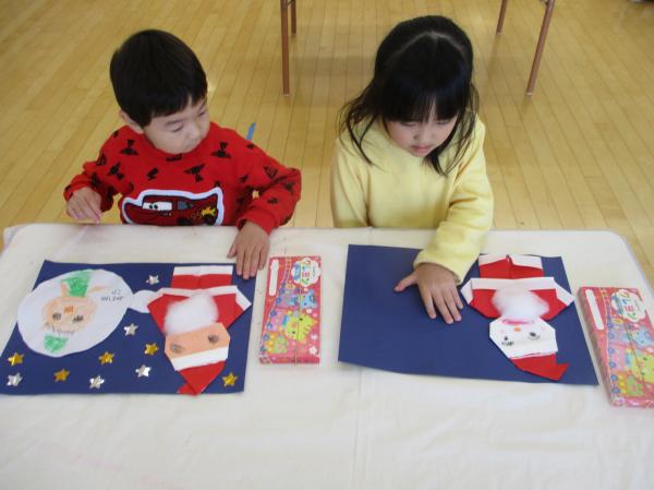 保育所内にはクリスマスツリーや、クリスマスのデコレーションが飾ってあります🎄子ども達に「クリスマスって言ったらなあに??」と聞いてみると、「サンタ、ケーキ、プレゼント、パーティー、チキン、イルミネーション」など、色んな言葉が出てきました👏その中でも一番嬉しいものは、やはり【プレゼント🎁】ということでした💖今月の壁面制作では、大きな和紙を使ってサンタクロースの折り紙🎅そして、サンタのプレゼントの袋には、自分が欲しいプレゼントを描きました😊自分が欲しいプレゼントを描いて、友達や保育士に嬉しそうに話をしていましたよ✨みんなの願いがサンタさんに届きますように・・・🍀