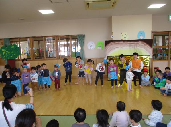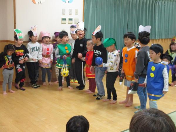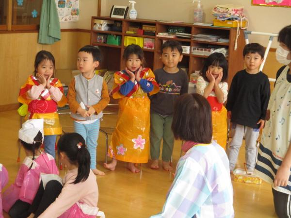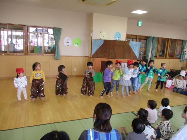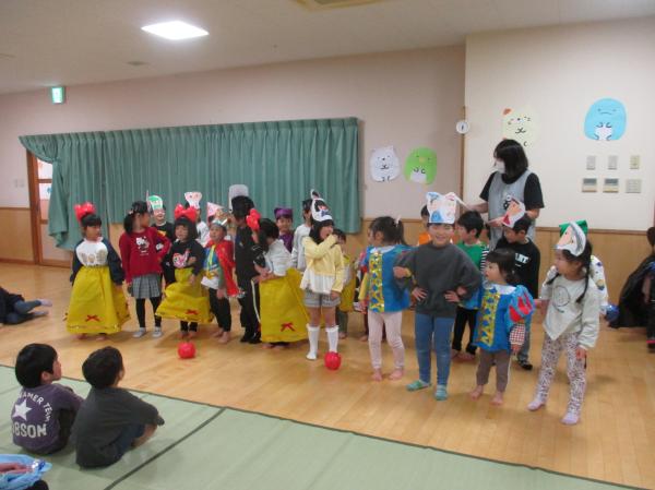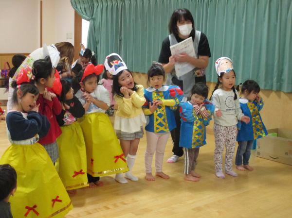 先週に引き続き、生活発表会の再現遊びをみんなで楽しみました😆🎶ぱんだ組ときりん組の劇を中心に行い、やりたい役になって楽しんでいた子どもたち😊衣装も身につけることができ、嬉しそうでした✨ひよこ組、りす組のお友だちは、衣装を着ているだけでかわいかったです💕生活発表会の余韻を十分に楽しむことができた子どもたちでした🤭❤