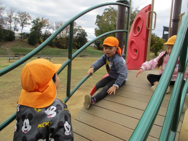 今日は、みらいの森公園に行ってきました😆💓久しぶりにバスに乗れて嬉しそうな子どもたち✨バスの中では、「ここに来たことあるよ❗」「ぼくの家はあっちにあるよ😆」と周りの景色を見ながら友達と楽しく話していました🎵話で盛り上がっているとあっという間に公園に到着🚍約束事を確認し、好きな遊具で遊びました🎶難しい遊具にも挑戦する子どもたち😀❗友達と一緒に公園に来られて嬉しそうでした😍✨途中からみんなで鬼ごっこも・・・😆最後まで元気いっぱいのぱんだ組でした✨最後にどんぐりや紅葉など秋の自然集めをしました🎶紅葉がとても綺麗でうっとり🍁😚保育所に帰ってくると楽しかった〜😆と満足そうな子どもたちでした💕