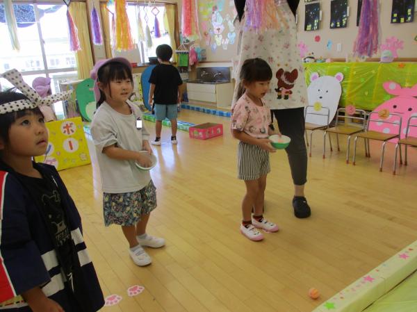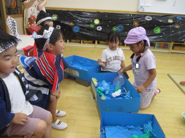 今日は、谷和原幼稚園の年長組さんを、すみっこぐらしの夏祭りに招待しました🏮「早く遊びたいな〜!」とワクワクしていた子ども達😊ペアになった子は、自己紹介をしてからいざレッツゴー✊自分たちが作った食べ物コーナーやゲームコーナーで一緒に楽しく遊びました✨係のお友達も、呼び込みや遊び方を教えてあげることに慣れ、たくさん盛り上げてくれました!「幼稚園のお友達と遊べて楽しかった〜💖」と喜んでいる子ども達でした♪