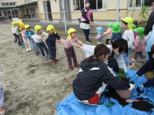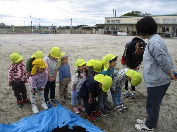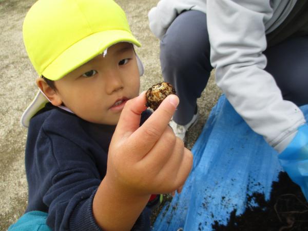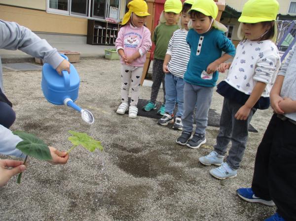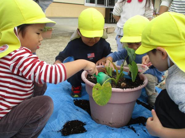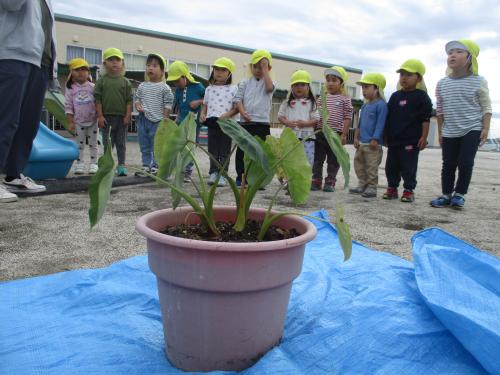 今から何をするのかな?と、興味津々だった子どもたち👀✨保育所で育てていた里芋が大きくなったので、うさぎ組さんが代表で里芋堀りをしました😊🎶里芋には、親芋、子芋、孫芋があることを教えてもらったり、葉っぱの不思議さを知ったりと、新しいことを知ることができたうさぎ組さん💡里芋もみんなで協力して、上手に掘ることができ、大喜びでした😆✨ご家庭でも、子どもたちから話を聞いてみてください💕