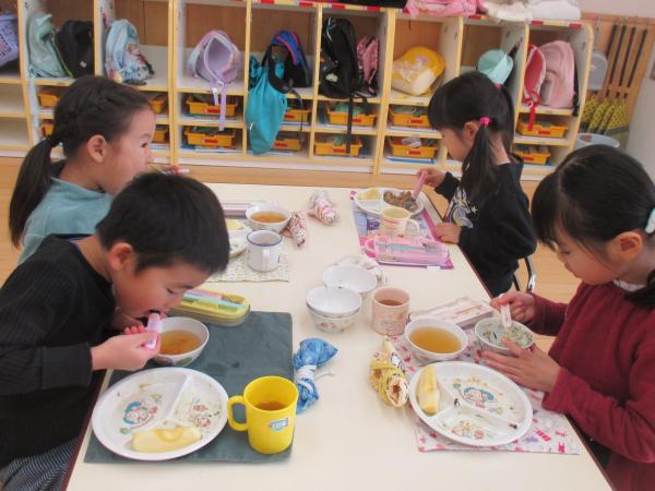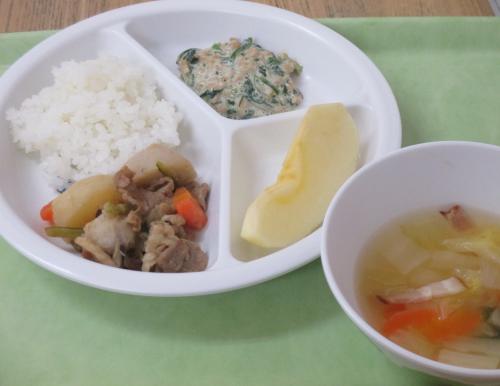 茨城県民の日の今日は、いばらきの特産物がたくさん使われたメニューでした😊豚肉と里芋のこってり煮、納豆サラダ、白菜スープ、りんごでした🍎野菜や果物などの美味しい旬の味覚がそろった内容でした。先日里芋堀りをしたうさぎ組さんは、給食を食べながら「里芋あったよ~❣」と嬉しそうに教えてくれました😆おやつは、さつまいもを使ったスイートポテトで、まさに茨城づくしの一日でした~🍴