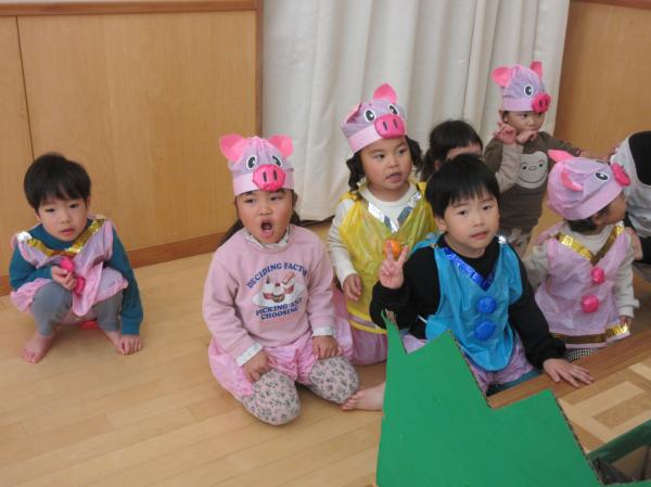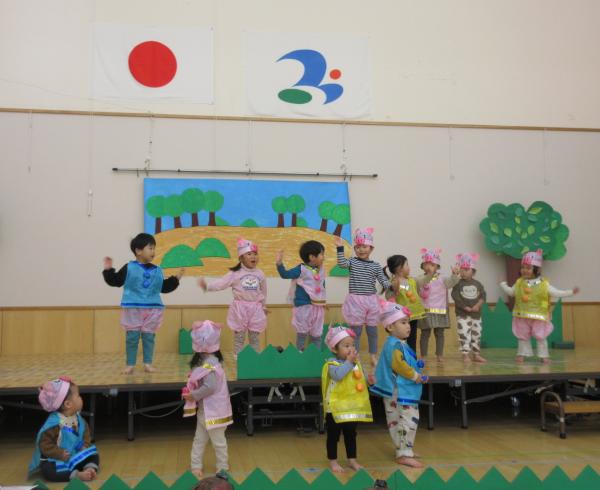今週は、生活発表会の再現遊びをしながら余韻を楽しんでいました😆❗うさぎ組のオペレッタ『3びきのこぶた』とぱんだ組のダンス『しなこワールド&はいよろこんで』きりん組『ENGLISH RECITAL 』をやりました😉自分でやってみたい役や衣装を交換して夢中になって取り組んでいた子どもたちです✨✨またひよこ組やりす組さんもお兄さんやお姉さんの真似をして嬉しそうでした😀