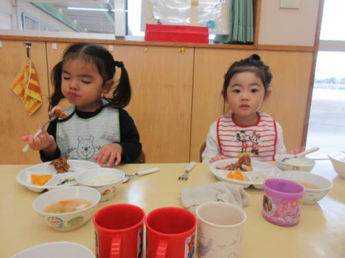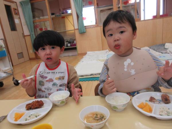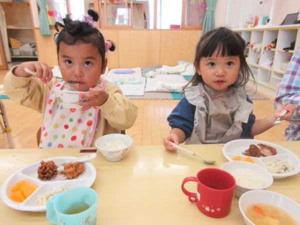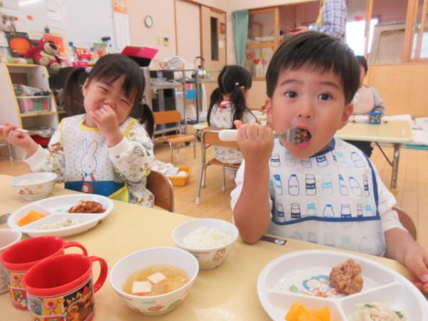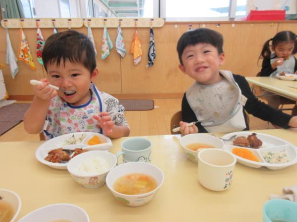 今週は給食やおやつの時間のみんなの「おいしいお顔」をお届けします😊🍽️今週も唐揚げやスパゲティなど子どもたちの大好きなメニューがたくさん出て、もりもり食べることができました❣️みんなで食べる給食は美味しいね✨「3点持ち」も上手になってきた、りす組さんです🐿️💕