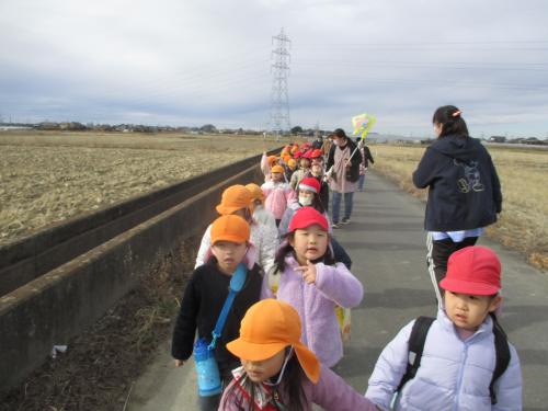 今日は、きりん組とぱんだ組で谷和原小学校まで散歩に行ってきました🎶きりん組は、初めて小学校まで歩くのでドキドキ・わくわく😆ぱんだ組は2回目なので、またお兄さん、お姉さんに会えるかなと楽しみにしていました💕小学校に着くと、校庭で遊んでいるお兄さん、お姉さんがドッジボールをしたり、縄跳びをしたりして遊んでいました🥰その様子に子どもたちは興味津々✨釘付けで見ていました👀❗帰り道は畑の野菜を見たり、りんぞうくんのトラックを見つけたりしながら、楽しく歩いて帰ってきました😉✌また、いろいろなところに散歩にいきたいと思います🎶