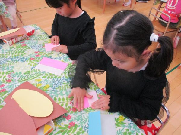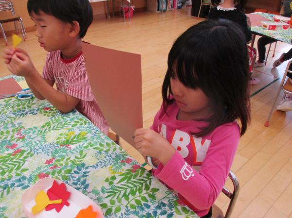 11月の制作を行いました😆✨ハサミで紅葉🍁やイチョウの葉の形を切ったり、折り紙できのこを折ったりしました🍄きのこは、少し難しいところもありましたが最後まで頑張って折っていた子どもたち✨一人で折れたときには、満面の笑みでした😍✌毎日、発表会の練習を頑張っていたので久しぶりの制作は楽しそうでした😀これからも息抜きをしながら、本番に向けて練習を進めていきたいと思います😀✌