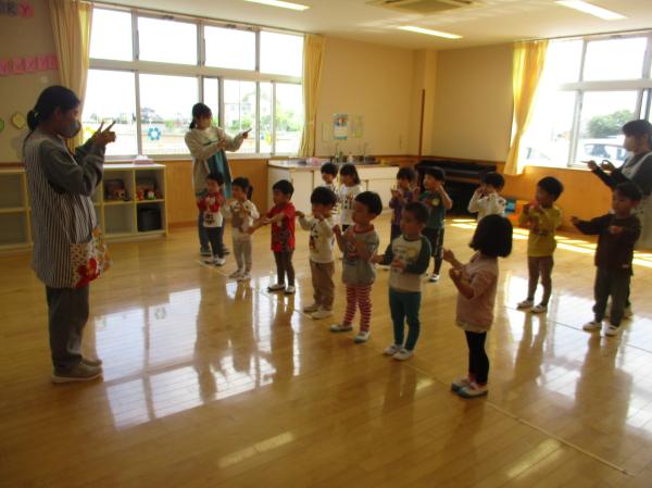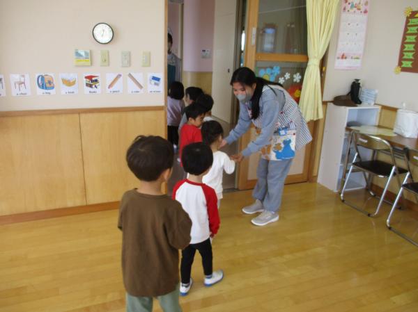 今日は、3回目の英語教室(*^▽^*)🎵 『thank you』『see you』などの身振り手振りが徐々に身についてきたうさぎ組さんです🐰💕