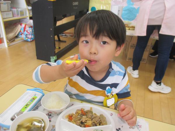今週の英語教室は、天気や「Happy😊」などの気持ちを英語で教えてもらいました🎶ヴィー先生の真似をして、楽しく発音している子どもたち😆毎回、どんな英語が出てくるのか楽しみなようです😍来週の英語教室もお楽しみに💓そしてそして・・・今日から運動会の全体練習が始まりました✨一生懸命に頑張る姿が見られました🎵頑張ったあとは、お腹がペコペコ〜😋ぱんだ組の子どもたちは、給食をモリモリ食べ、きりん組が筋取りをしてくれたスナップエンドウも美味しくいただきました🌈